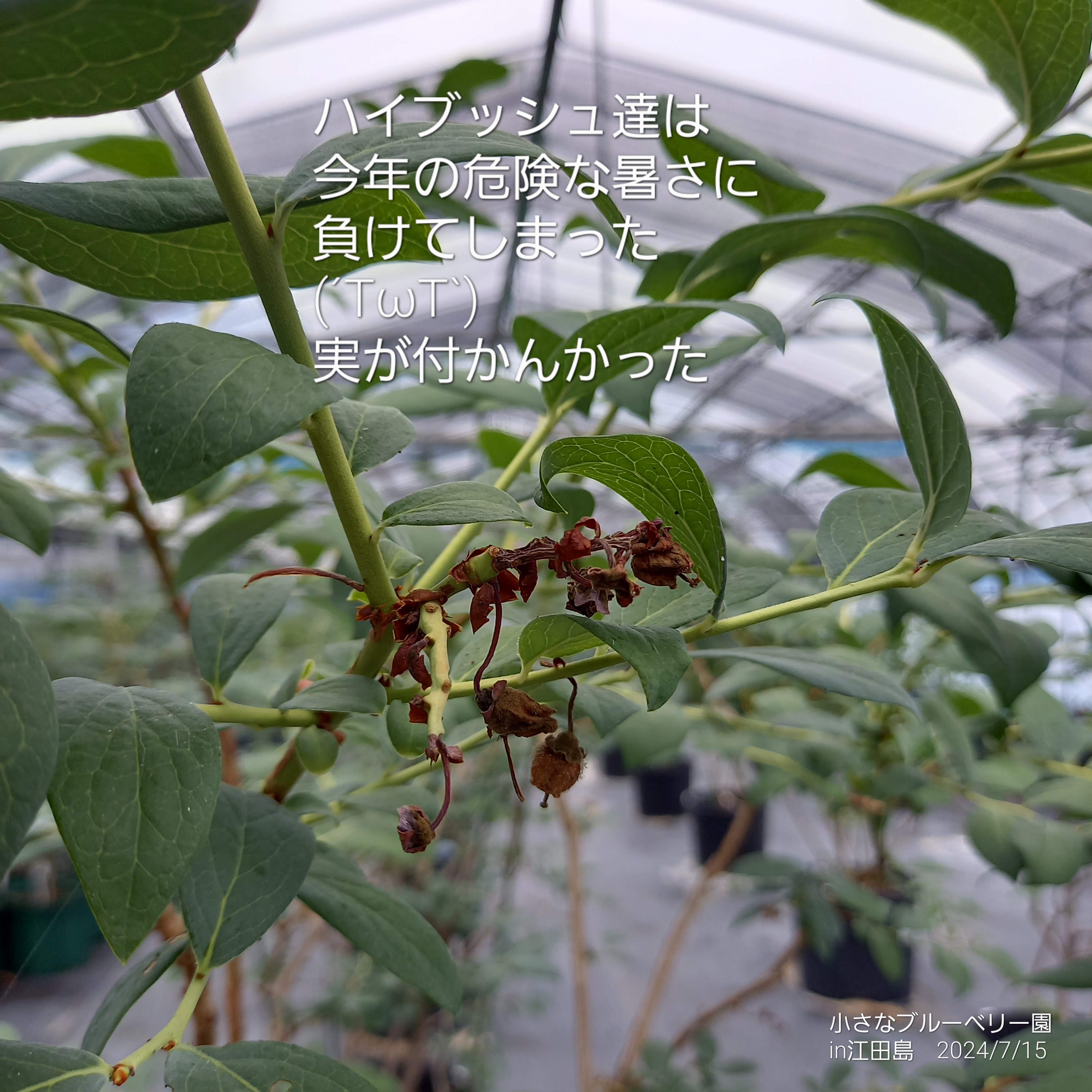 ・ブルーレイ:花芽が見当たらん→夏に枝切りすぎたかもだが、虫にも齧られとる・・・